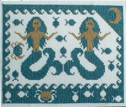 This one makes me smile! These lovely ladies (mermaids) are floating within a funky wave border with a crescent moon, many tiny fish, and a few crab friends. So fun!