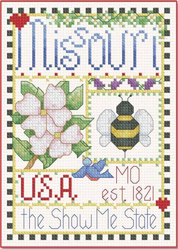 Show your Missouri pride with this charming Little State Sampler. Featuring the dogwood blossom, a buzzing honeybee, and sweet details like the bluebird, it beautifully highlights “The Show Me State” and its rich heritage. A colorful and delightful project, perfect for stitchers who love Missouri’s natural beauty and history.